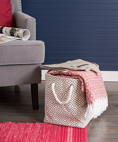 Large storage bin measure 17x12x12-inches, storage bin will hold shape once filled, constructed of woven paper with soft cotton rope handles knotted through grommets, holds up to 17 lbs (7.7kgs)