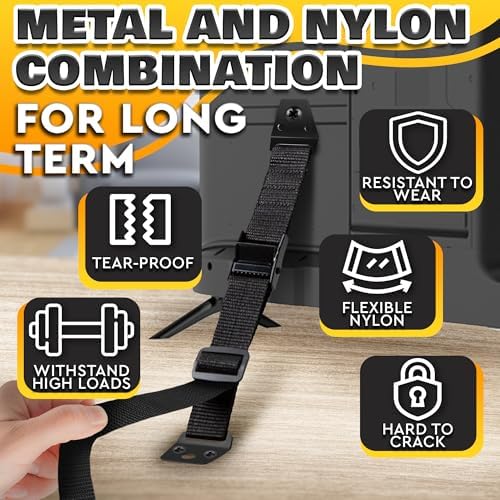 Durable Material: These TV anti tip straps are crafted from sturdy metal and durable nylon. TV anchor holds up weights up to 330 lbs – which is enough for any furniture in your home